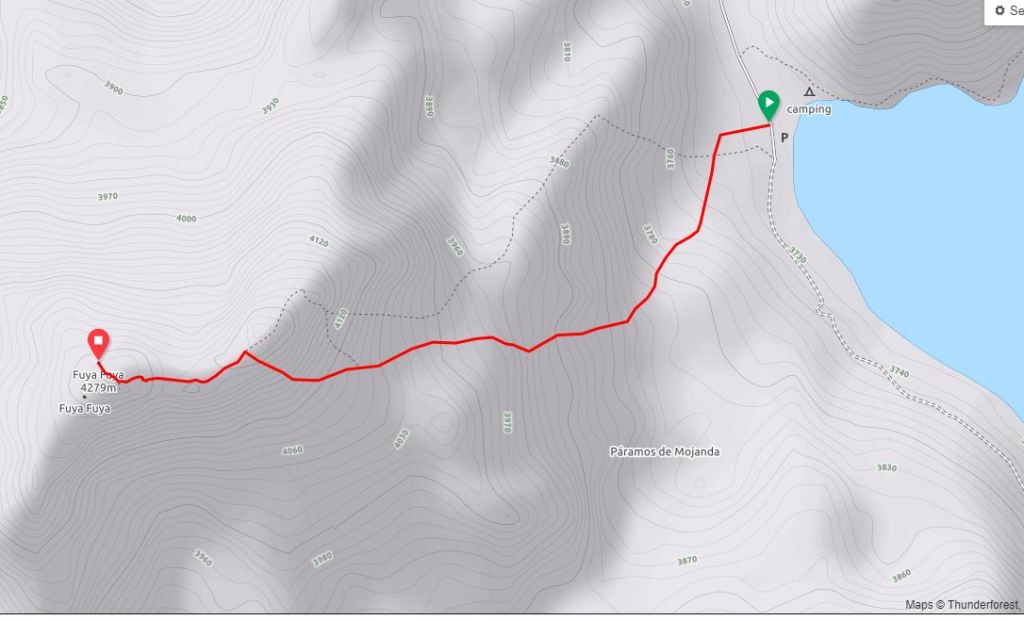 El camino, bastante bien marcado, arranca a la derecha del aparcamiento y trepa con pendiente violenta desde el principio. Estamos a 3800 m, hemos superado la línea de bosques y nos encontramos en pleno páramo .