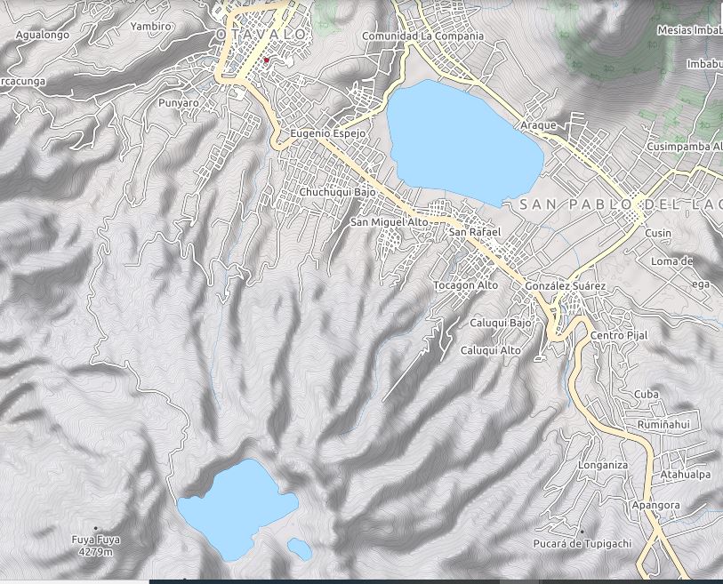 La vuelta incluía un tramo final más monótono, por pista, que nos ahorramos viajando en la caja de una camioneta que tuvo la gentileza de acercarnos al aparcamiento (o parqueadero que dicen allí). Bajamos a la ciudad de Otavalo, donde nos alojamos en un hotel muy agradable a las afueras, con aspecto de quinta colonial, y pudimos visitar su célebre mercado de artesanías. Víctima de su fama, se ha convertido en cierto modo en una trampa para turistas, pero se puede encontrar excelentes productos textiles típicamente andinos. La ciudad de Cotacachi, por otro lado, es la capital de la artesanía del cuero en Ecuador.
