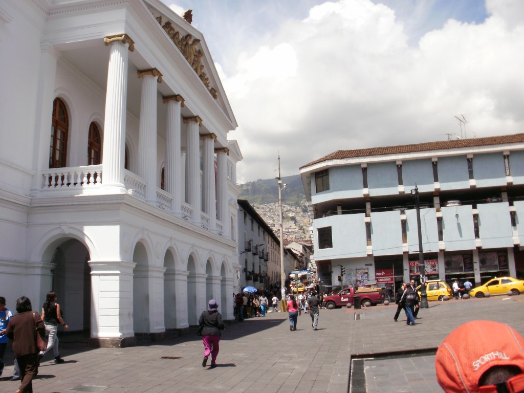 Así las cosas, el 15 de enero de 2012 tomábamos tierra en el antiguo aeropuerto Mariscal Sucre de Quito. Pocos años más tarde se inauguraría el nuevo aeropuerto ubicado fuera de la ciudad, reconvirtiéndose su antecesor en un parque público, pero el aterrizaje en uno de los aeropuertos internacionales objetivamente más peligrosos del mundo impresionaba; el avión pasaba literalmente rozando los techos de los edificios. Tras superar los controles de inmigración vengo a descubrir que mi maleta ha sido dañada. Afortunadamente no tanto como para haber desparramado mi equipaje, pero después de un largo viaje de casi doce horas tener que ponerse a buscar el mostrador de reclamaciones de Iberia y rellenar formularios no es lo que más apetece. Una vez solucionado este trámite, salimos a la zona de llegadas, donde nos aguardaba Rafa, en medio de un tráfago sudamericano inolvidable, con el telón de fondo de un aguacero tropical que acababa de reventar. Saludos, y rápidamente nos acomodamos en la furgoneta. Nuestro destino inmediato es el hotel, donde reposaremos antes de salir a cenar y finalmente, dormir… Se nos deja claro que no nos alejemos más de lo debido del hotel, como ya he dicho Ecuador es bastante seguro pero no faltan los merodeadores, a menudo bajo la influencia de las drogas, con lo que no es conveniente encontrarse. No nos costó mucho hacer caso a estas recomendaciones, ni conciliar el sueño esa noche.