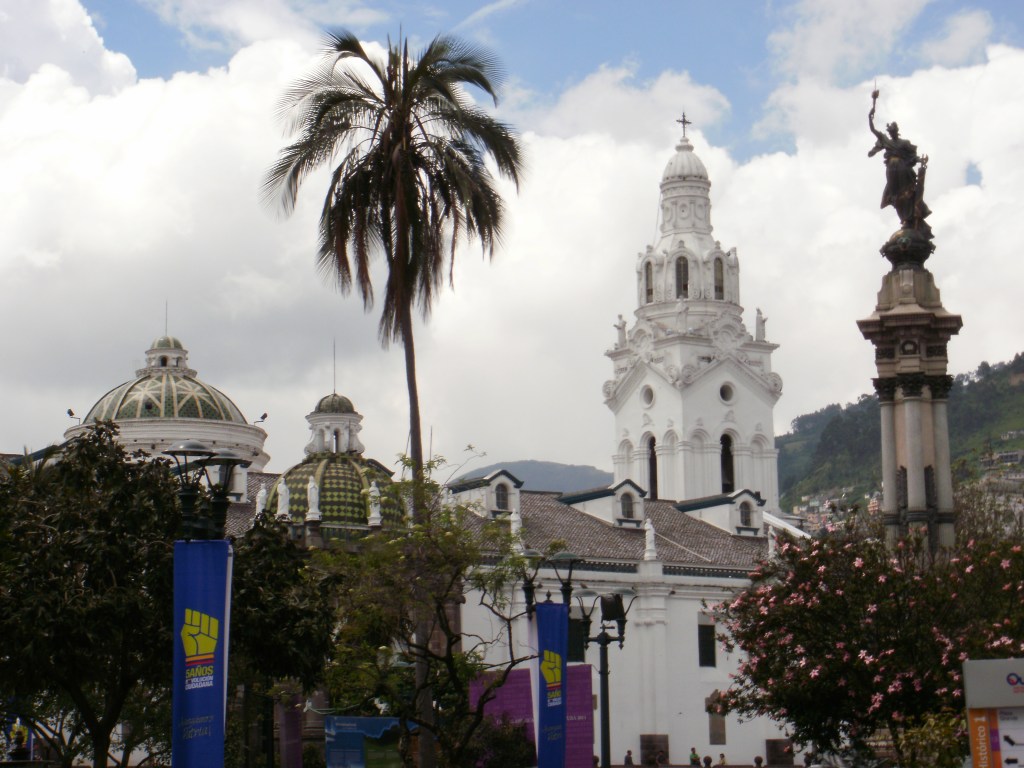 El programa de quince días de duración incluía como grandes objetivos los célebres volcanes Cotopaxi (5897 m) y el Chimborazo (6310 m). Para ello era precisa una primera fase de aclimatación, que incluía las ascensiones del Fuya Fuya (4263 m), Rucu Pichincha (4784 m) e Illiniza Norte (5126 m). Nuestra primera jornada en Ecuador iba a ser tranquila, de todos modos, dedicada al turismo en Quito. Esta ciudad posee el centro histórico colonial más rico de América Latina, Patrimonio de la Humanidad desde 1978. Su historia se remonta a bastante antes de su fundación oficial por Sebastián de Benalcázar en 1534. Los pueblos Cara y Shiri establecieron en ella su capital antes de la conquista Inca. En los últimos años del Tahuantinsuyu Quito, ciudad natal de Atahualpa. llegó a disputar la capitalidad a Cuzco. Tras la captura de Atahualpa por los españoles y su derrota en la batalla del Chimborazo, el general Rumiñahui ordenó reducir a pavesas la ciudad y trasladar el Tesoro a lugar seguro. Pese a las torturas que le infligieron los conquistadores, el héroe inca no reveló su ubicación, y así permanece hasta hoy.