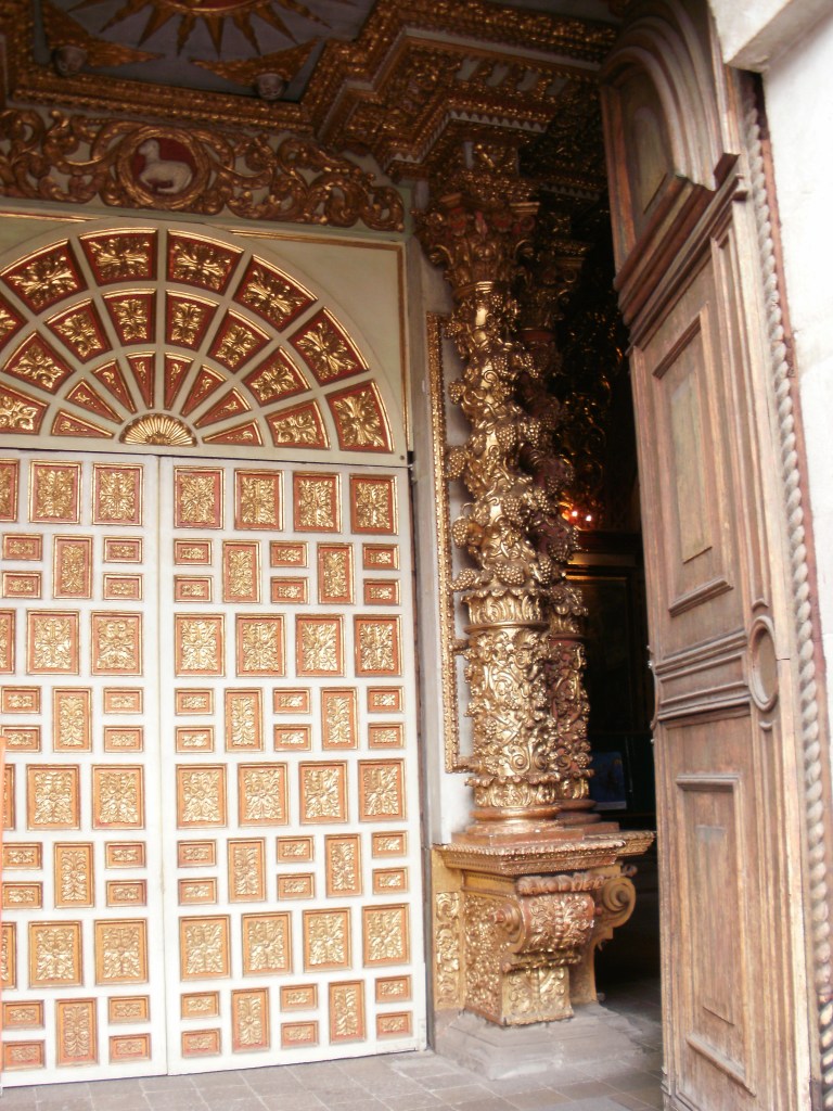 En las inmediaciones de la Plaza se encuentran la Iglesia de San Agustín, así como la impresionante Iglesia de los Jesuitas, opera magna del barroco colonial, con influencias hispanas, italianas, flamencas e indígenas. Construida en piedra volcánica, la fachada luce macizas columnas salomónicas, mientras que el apabullante interior (donde no se permiten fotos) es barroco en su máxima expresión, con las naves recubiertas de pan de oro, yesos dorados, estucos y tallas de madera. Este estilo puede no ser del gusto de todos, pero yo reconozco que quedé impactado.