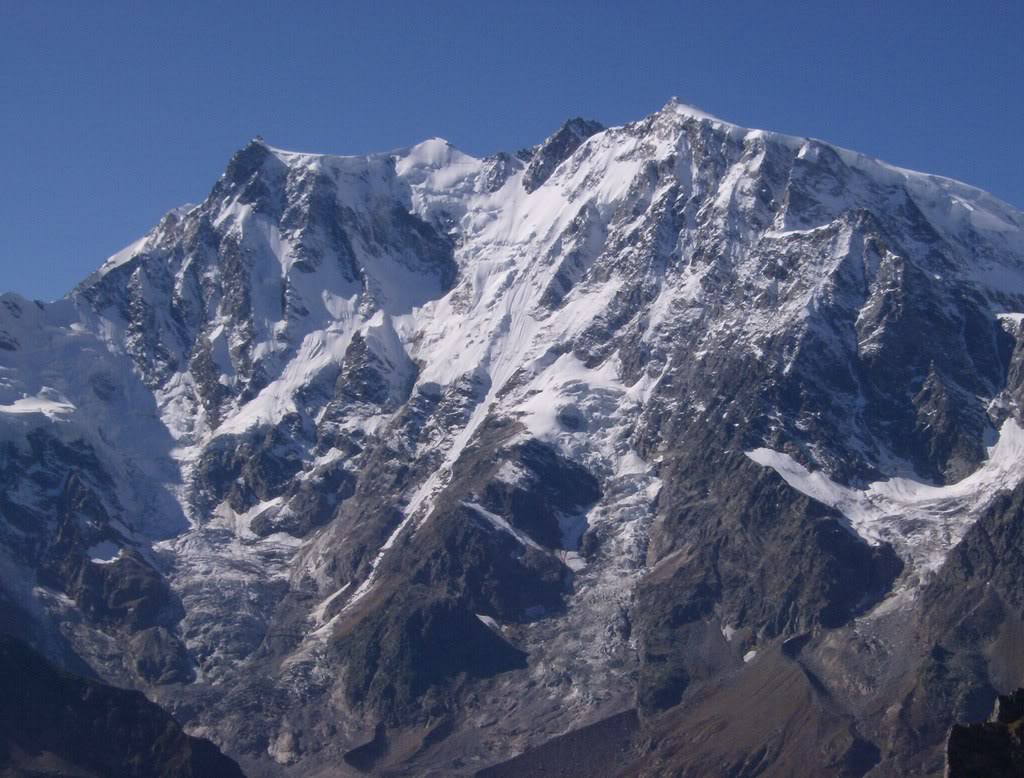 A los pies de la pequeña población italiana de Macugnaga se alza la más impresionante pared montañosa de Europa. Para muchos, la única del continente con características netamente himaláyicas. son 2600 m de verticalidad que con cielo claro resultan visibles a distancias de cientos de kilómetros. Llega a distinguirse desde las afueras de Milán cuando se conduce por la autopista hacia el Paso del Simplón, y con las primeras luces de la mañana resplandece incendiada en tonos rosa y anaranjados. Alpinísticamente hablando, es un desafío endiablado y lleno de peligros objetivos, señaladamente la caída de avalanchas de hielo y nieve. A pesar de su dificultad, fue vencida ya en 1872 por una cordada integrada por Imseng, Oberto, Pendlebury, Taylor y Spechtenhausen, que salieron directos a la Punta Dufour, punto culminante del macizo, por una vía sumamente expuesta. En los años sucesivos se fueron abriendo nuevas vías de dificultad creciente, que implicaron a las mayores leyendas del alpinismo de finales del sXIX e inicios del XX: Mattias Zurbriggen, Guido Rey, Luigi Burgener, el mencionado Imseng, o Damiano Marinelli, quien dio su mombre al más famoso canalón de la pared, donde encontró la muerte en 1881, víctima de una avalancha. La ruta actual está aquí.