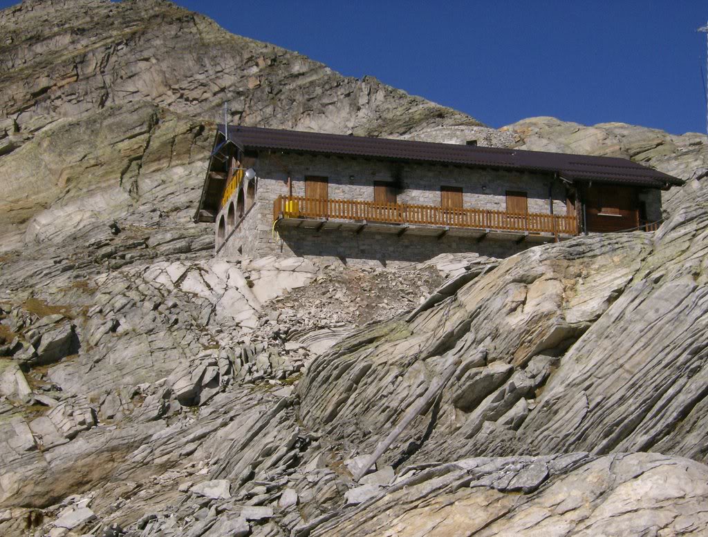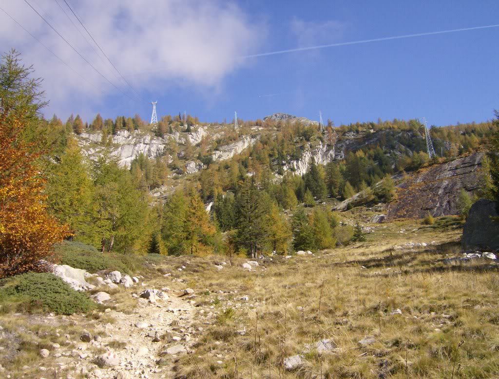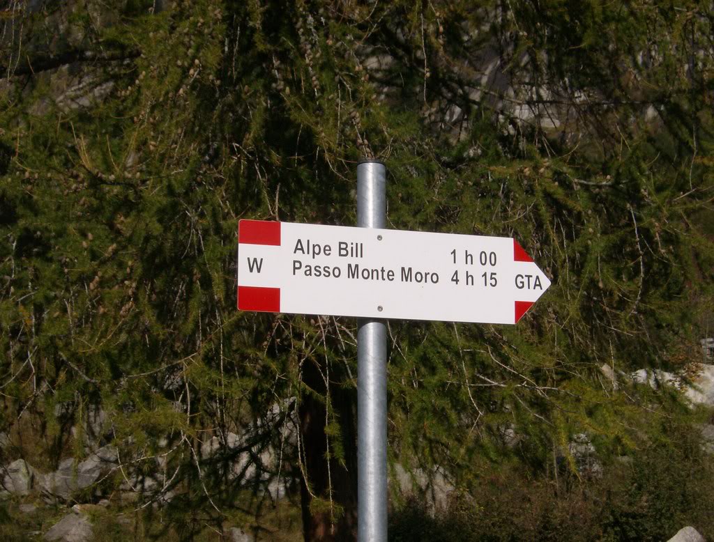 Pues como iba diciendo. 7 de Octubre de 2007. El buen tiempo invita a salir, y a buscar un monte alto. Vamos a echar un ojo al mapa del Monte Rosa, que hay vida más allá de los cuatromiles, y esta es buena época para explorar esas montañas a las que uno nunca va en verano, que están a la sombra de los grandes. Como ya comentaba, el Joderhorn, que supera la cota de los 3000 , es el elegido. El sendero, muy claro hasta el paso de Monte Moro, presenta el problema de que sigue el trazado de los remontes de esquí de Macugnaga, y eso no me gusta, pero compruebo que la apertura estival de estos artefactos finalizó a últimos de Septiembre. Es decir, que hasta que comience la temporada de esquí se podrá disfrutar del paseo con tranquilidad. Pues allá vamos…