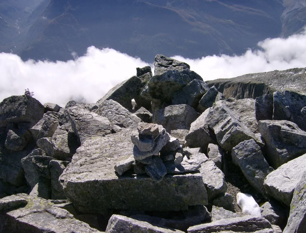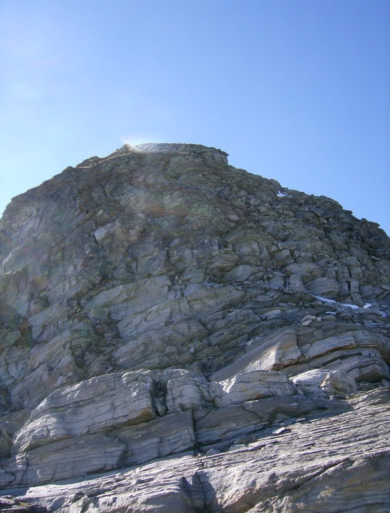 Por aquí encuentro a un grupo de suizos almorzando. Junto con otro caminante solitario que me encontré durante la subida, los únicos montañeros con los que compartí la montaña ese día. Es curioso, seguro que hace quince días esta zona estaba concurridísima, con el acceso facilitado por el teleférico. En fin, sólo me quedan 200 m de desnivel hasta la cima.
