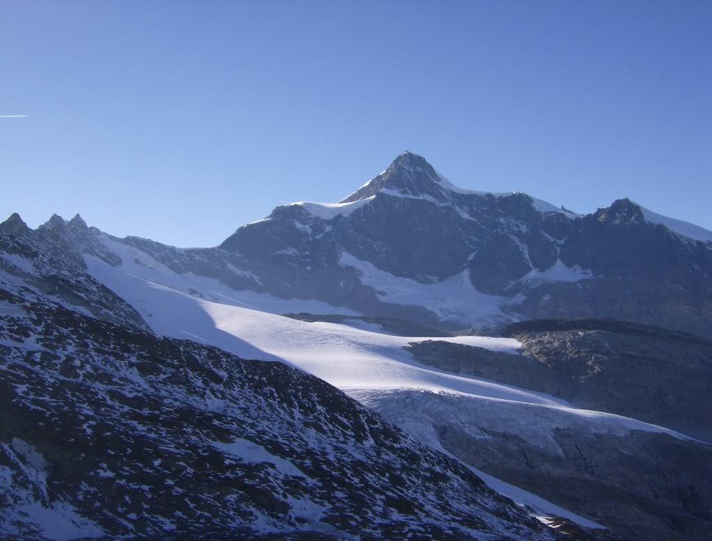 Y aquí el Strahlhorn, dominante sobre el glaciar Schwarzberggletscher.