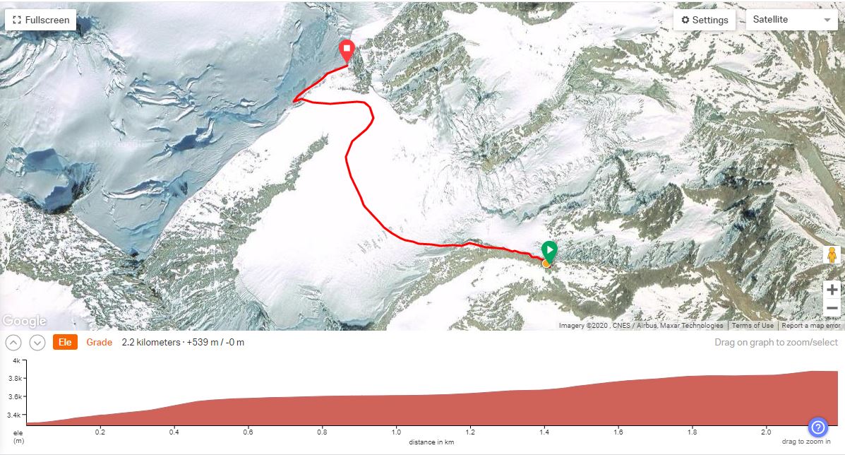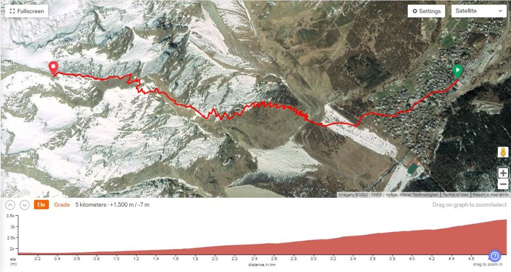 Así que parto de Milán temprano en dirección a Domodossola, entro en Suiza, atravieso el Simplón y desciendo al gran nudo de comunicaciones de Brig, en el valle del Ródano. La autopista que desciende por el valle llega a Visp tras una decena de kilómetros , y de aquí parte la carretera, ya conocida, que remonta el valle del Mattervispa hacia Zermatt. En Stalden me desvío a la izquierda, adentrándome el el valle del Saas. Estos lugares me resultan familiares, siete años antes tuve aquí mi primera experiencia alpina. Llegando a Saas Grund, una carretera secundaria me conduce finalmente a Saas Fee, uno de los principales resorts de esquí de Suiza. Aquí se encuentra el Metro Alpin, un funicular subterráneo que sube hasta los 3456 m del Mittelallalin; a lo que parece es éste el funicular más alto del mundo.