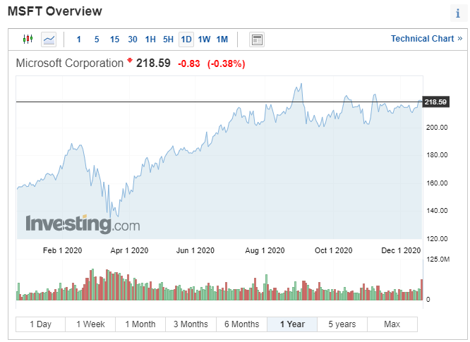 ¿Y qué sucedió con los otros cuatro grandes? Veamos la compañía de Bill Gates, el nuevo máster planetario en epidemiología. Acusó el golpe más que Amazon, pero aún así ha mejorado significativamente el comportamiento global del índice.
