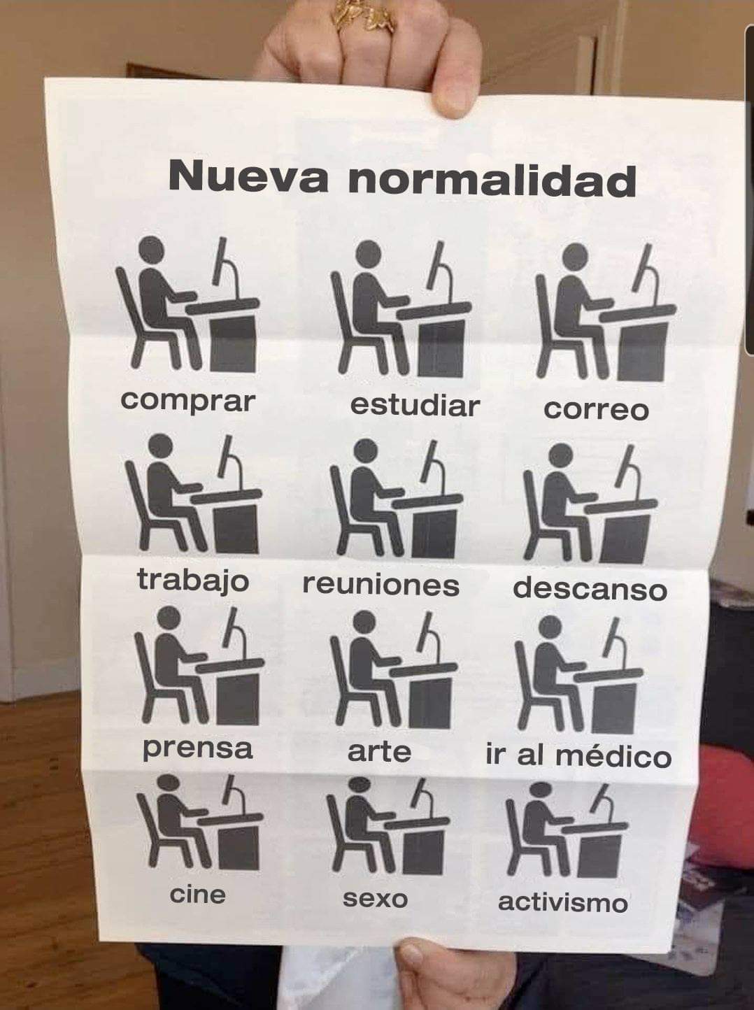 Aunque aún provocará mucho dolor, gracias a las vacunas ya aprobadas y las que se autorizarán próximamente, junto con la propia dinámica de las epidemias virales, deberíamos ser capaces de superar la pandemia a lo largo de este 2021. Saldremos de ella como ya lo hicimos con todas las anteriores. Lo que más me preocupa ahora son sus cicatrices, los efectos a largo plazo que podría producir en nuestra salud como ciudadanos de democracias liberales. El riesgo de que pueda contribuir a la desaparición efectiva de la democracia tal y como la hemos conocido. La devastación psicológica que ha producido es un hecho. Gente que tiene miedo de salir a la calle, de abrazar a sus seres queridos, que se aparta de otras personas por la calle, cual apestadas, que rechaza el contacto físico… ¿Podría suceder que estas conductas se afianzaran definitivamente y saliéramos de esta pandemia como una sociedad repleta de psicópatas sociales? El caso de los niños que están interiorizando el miedo al otro y a la fisicidad compartida es particularmente preocupante. La atomización y la cronificación del miedo nos llevarían a un debilitamiento de los vínculos comunitarios espontáneamente establecidos por las personas libres, y que constituyen la mejor garantía contra tentaciones totalitarias. Y es que esta pandemia puede venir muy bien a quienes alberguen tales intenciones. Ya se habla de que mascarilla y distancia social nos seguirán acompañando durante muchos meses pese a las vacunas, y que la «nueva normalidad», eufemismo para referirse a una dictadura de facto, si no ha venido para quedarse, poco le falta. Y eso es lo que no se puede consentir. Que acabemos asimilando que nuestra libertad de movimientos, de reunión, de interacción social… no son derechos consustanciales a nuestra naturaleza humana, sino una gracia otorgada por los gobernantes. Eso y no otra cosa era el feudalismo medieval. Porque hoy nos «confinan» por una pandemia, pero mañana la excusa puede ser otra, el cambio climático, el consumo excesivo, un problema de seguridad nacional… No podemos perder de vista la excepcionalidad de tales medidas, que jamás deben formar parte de ninguna «normalidad», ni nueva ni vieja. Hay un meme que ha circulado abundantemente por Internet y que refleja bien este futuro distópico ante el que deberíamos estar prevenidos.