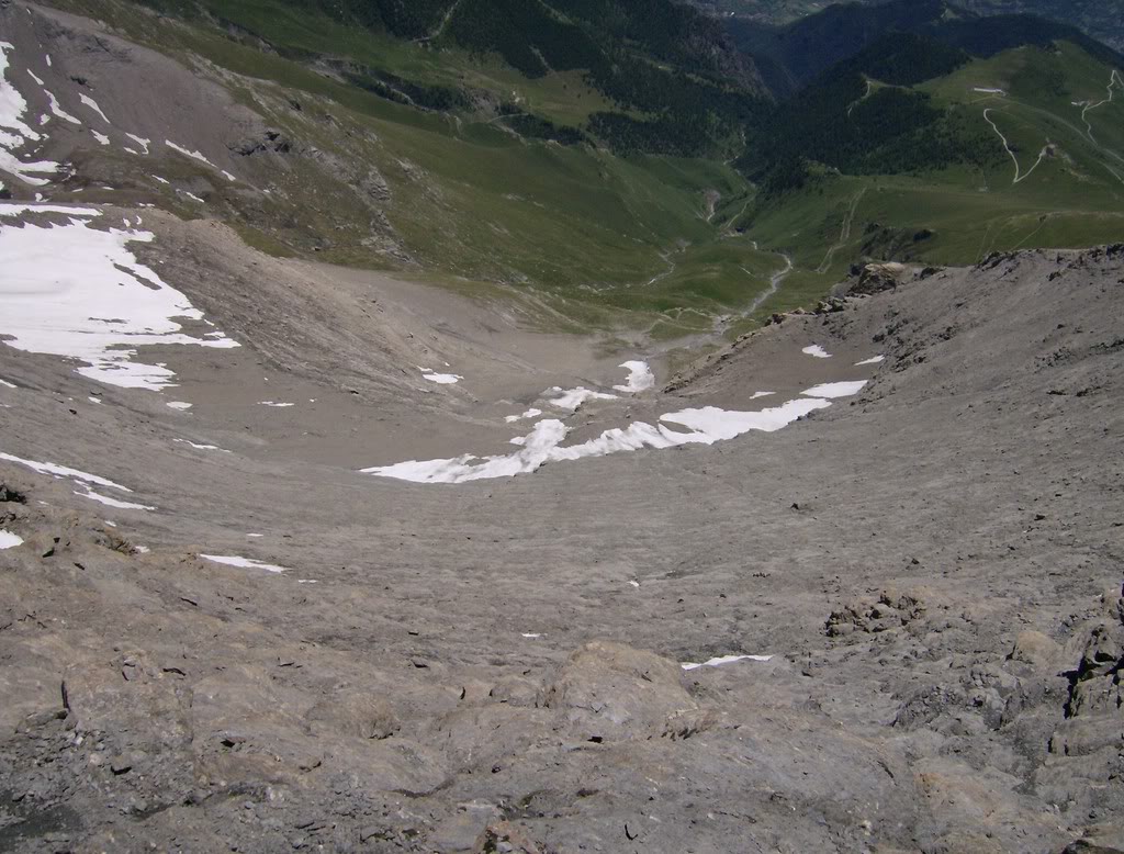 Comienzo a bajar volviendo sobre mis pasos. Desde la cima la cara Este, sobre Susa, impresiona.
