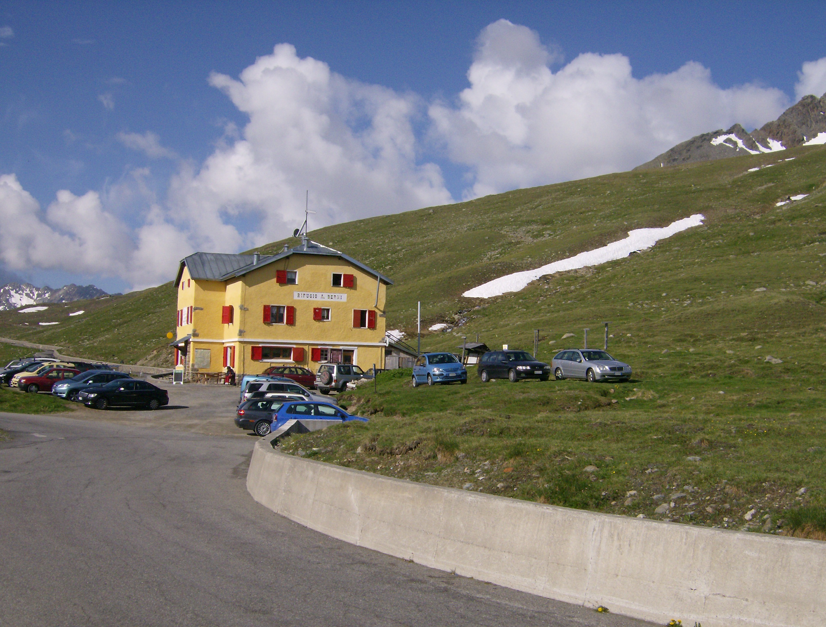 Tres horas de viaje desde Milán hasta Ponte di Legno remontando toda la Val Camónica y subiendo al Passo Gavia, mítico puerto del Giro de Italia. Al poco de superar el puerto y pasar junto al Lago Bianco se alcanza el Refugio Berni, un gran edificio con habitaciones y restaurante, y amplio aparcamiento donde dejo mi coche. Desde aquí el camino a seguir, bien señalizado, no tiene pérdida. Una pista desciende hacia el cauce del cercano torrente Gavia.