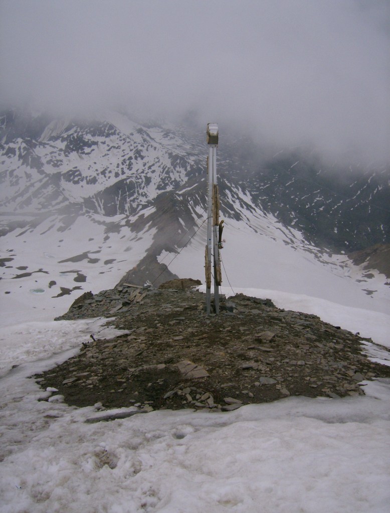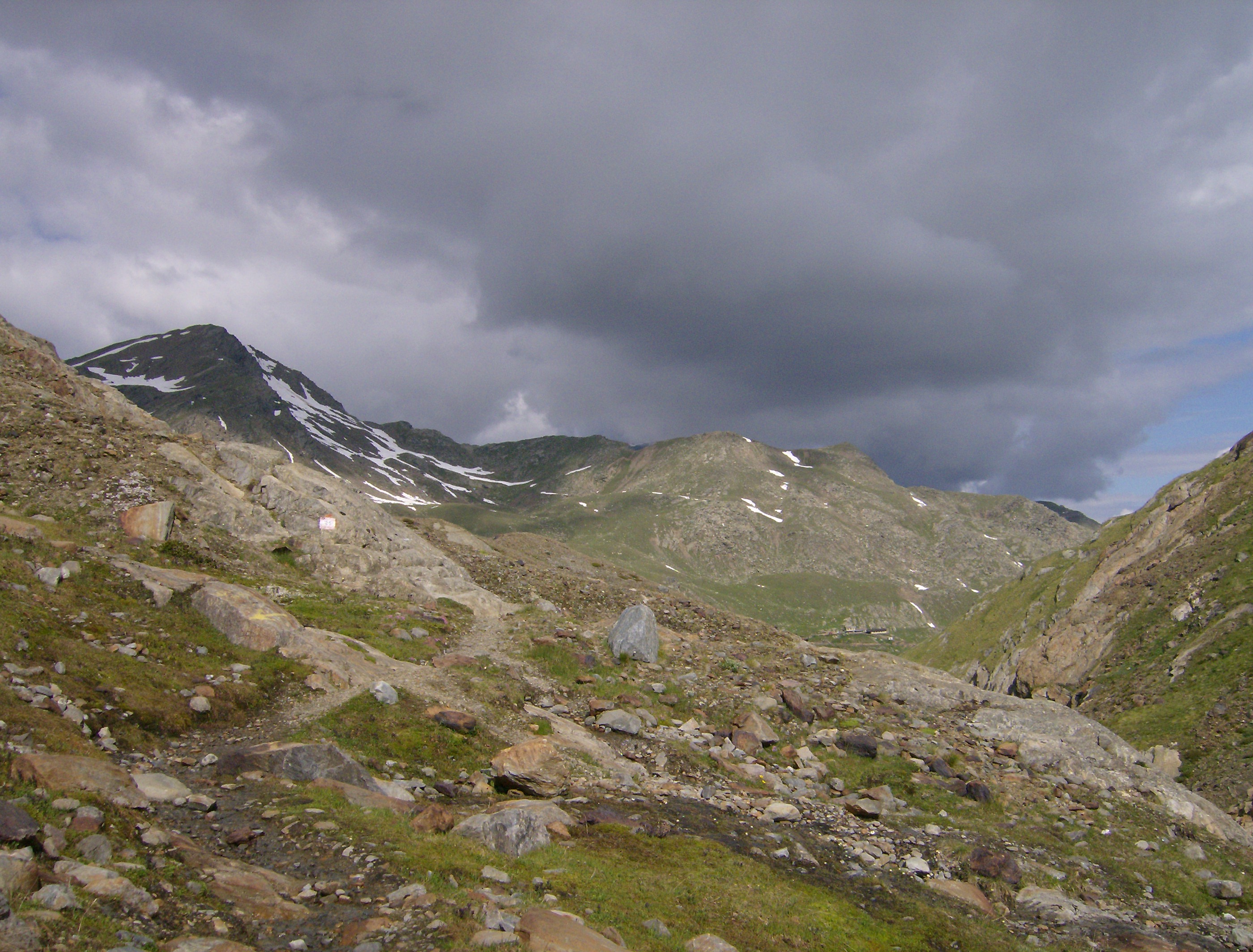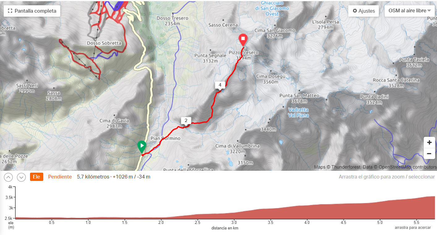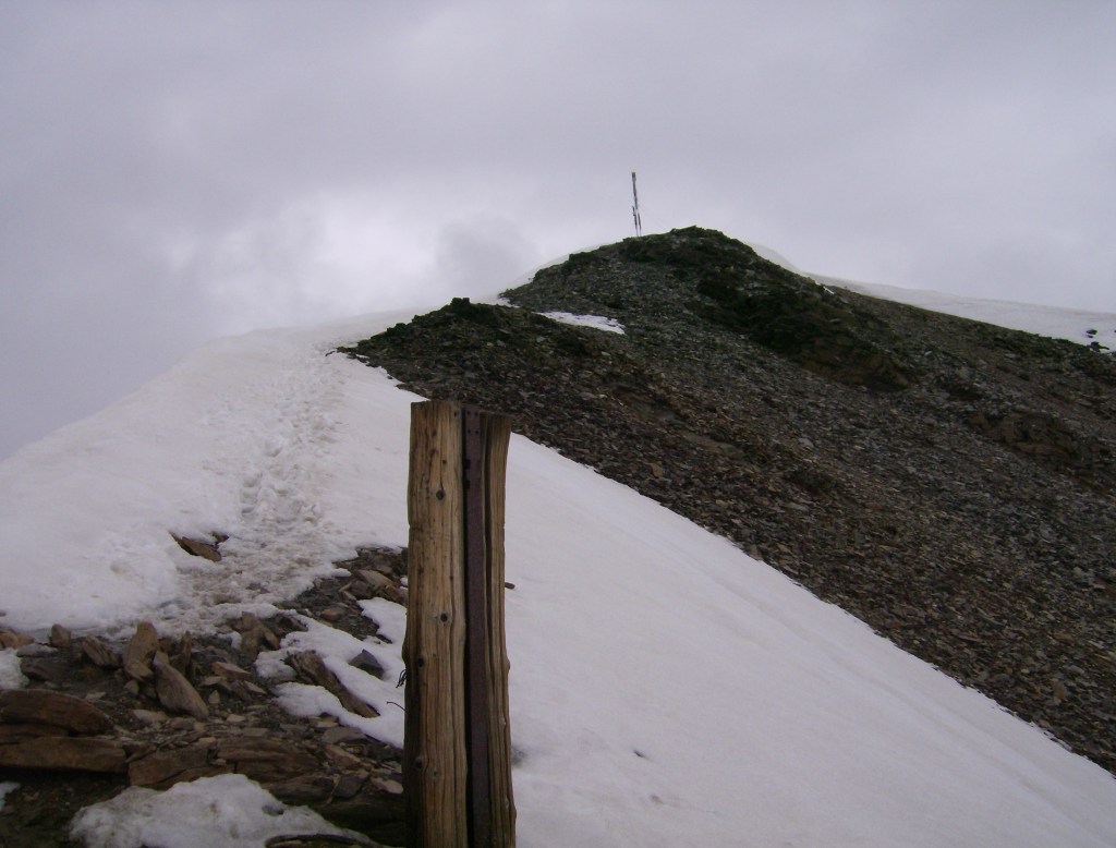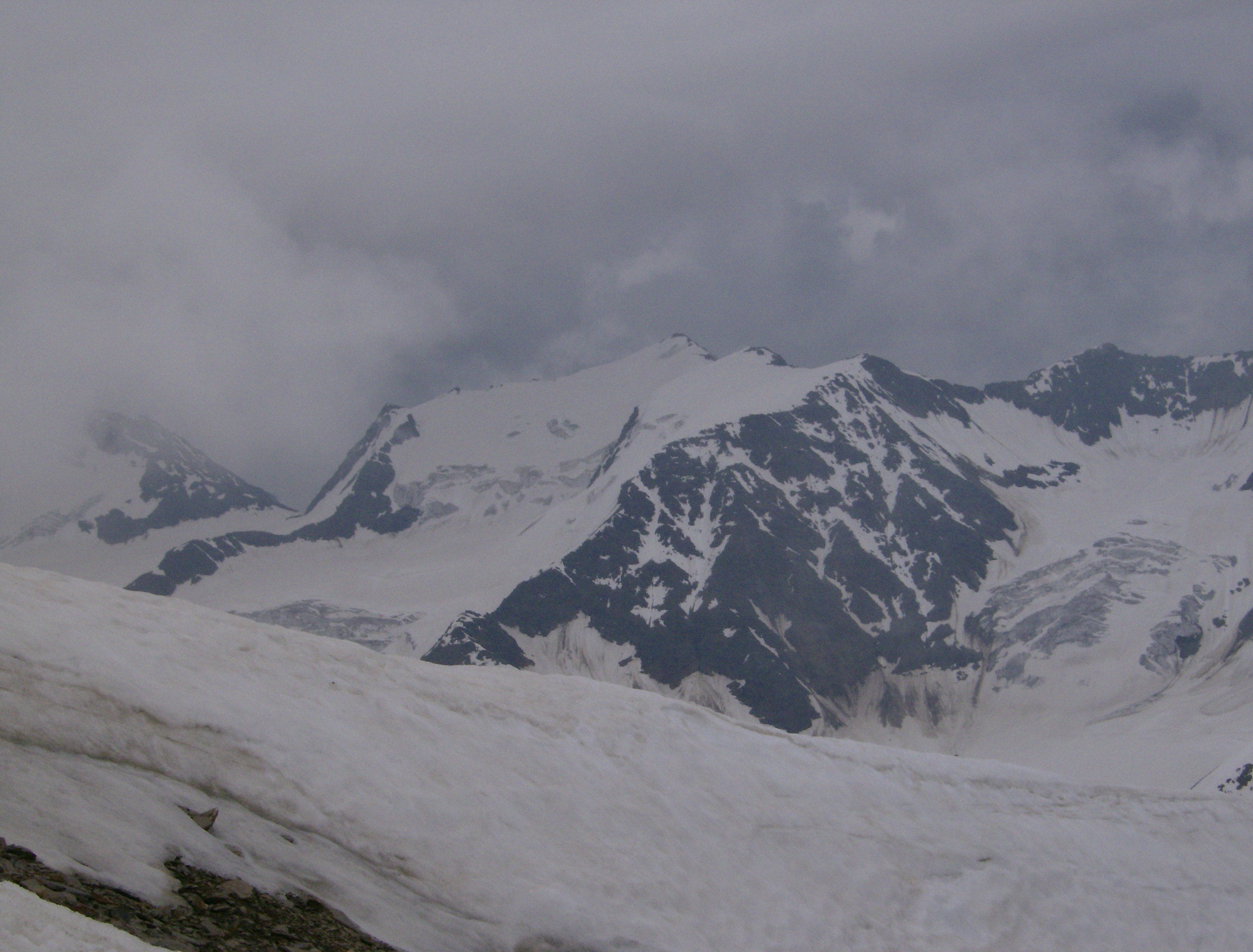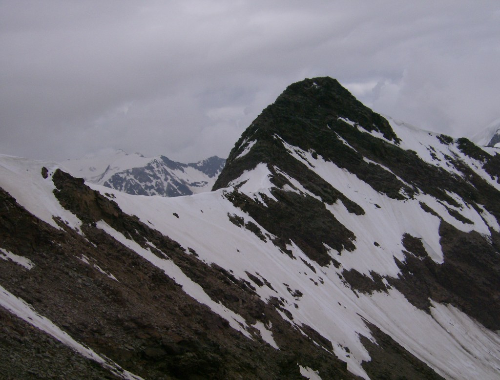 La Punta Pedranzini (3599 m), cima secundaria muy cercana al Tresero en el cordal que va hacia la Punta San Matteo, se muestra tentadora. Entre el tiempo inseguro y la fatiga acumulada, sin embargo, me ahorraría el esfuerzo de llegar hasta ella.