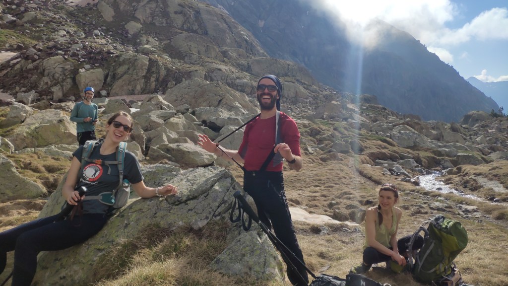 El tiempo se está aguantando y aunque en la cresta de la Tusse tiene toda la pinta de estar lloviendo, una vez de vuelta a la Pleta de Remuñe nos llega a asomar un poco de sol. Alcanzamos el cruce del camino que va a los lagos y decidimos dividirnos. Audrey y Diego van para allá mientras yo bajo con el resto del grupo por el camino de subida. No sin antes encargarles el reportaje fotográfico de los lagos. Que sí, que son una gozada.
