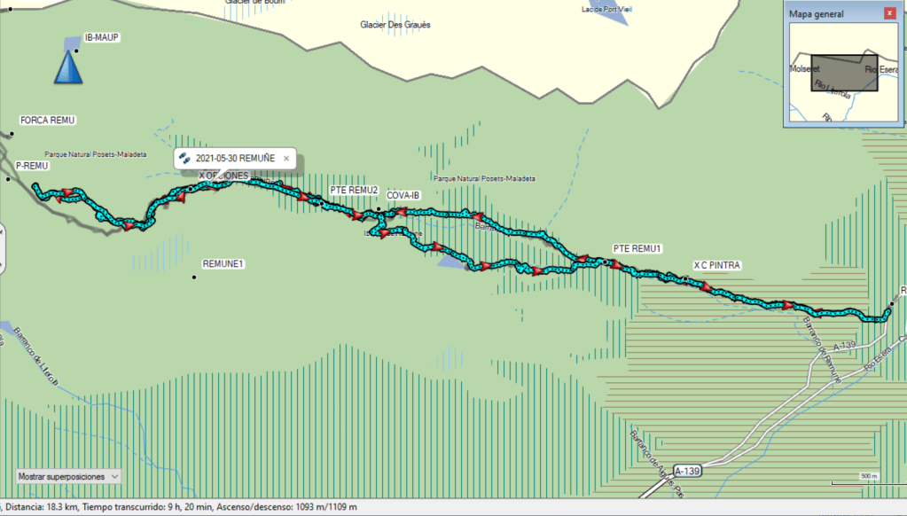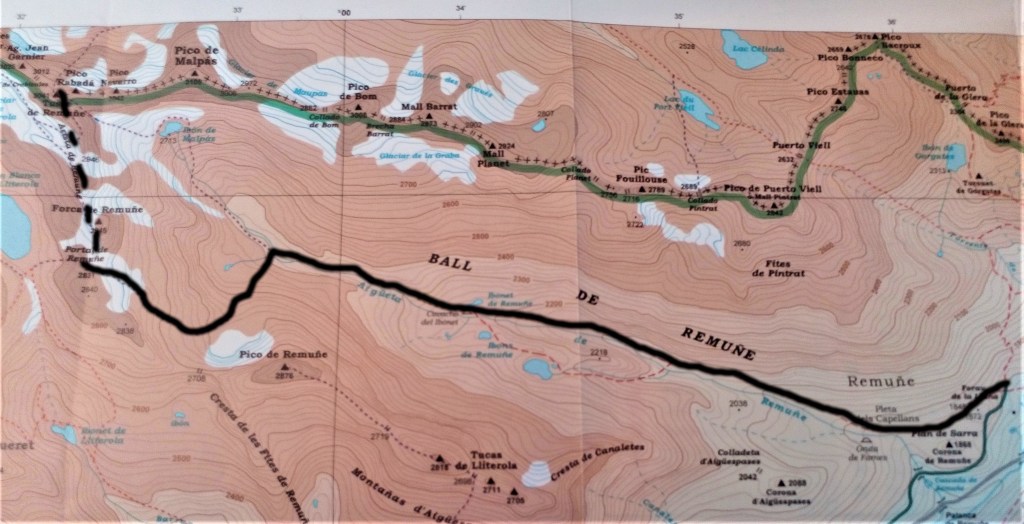 2021 está siendo un año en el que las medidas tomadas contra la pandemia de coronavirus nos han impedido disfrutar de la montaña. La arbitrariedad profundamente idiota, si no directamente sádica, de los «confinamientos perimetrales» nos ha condenado a la inactividad y a la frustración. En mi caso, el año se presentaba con la promesa de múltiples posibilidades, y en mi nuevo papel de coordinador de Alta Montaña del Club Alpino Barcelona, con la ocasión de organizar y compartir salidas a mis lugares preferidos. Tan pronto como se recuperó la movilidad nacional, era el momento de poner en marcha los planea aplazados. Uno de ellos tenía como objetivo los picos de Clarabide; consideraciones logísticas así como de prudencia debido a la longitud del itinerario y el estado de forma más bajo de lo normal debido al forzado parón de seis meses me empujaron a buscar una alternativa más asequible. Y he aquí que se me aparece la Tusse de Remuñe, en la cabecera del valle homónimo. «Sólo» 1300 m de desnivel y 8 km desde el coche hasta la cima, sin dificultades técnicas relevantes. Nunca había estado allí, y me llamaba la curiosidad. En Internet no había tantísima información, pero parecía un sitio digno de visitarse. Allaá vamos entonces.