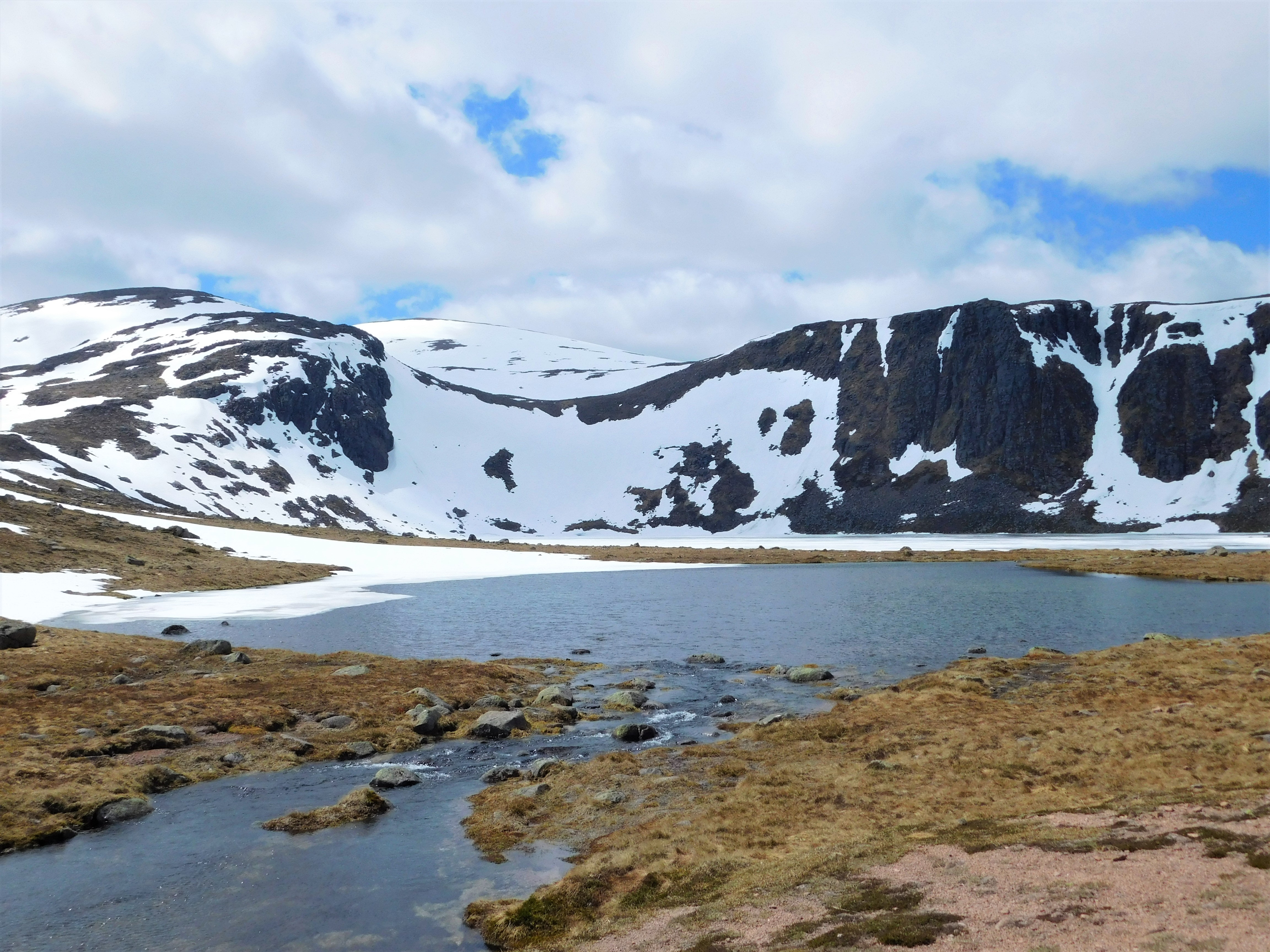 Son casi la una y media cunado alcanzo el Loch Etchachan, a 920 m. Aquí mi camino se desvía hacia la izquierda, directo al Ben Macdui. El paisaje aquí es sugestivo, ¡parece casi un lago alpino!