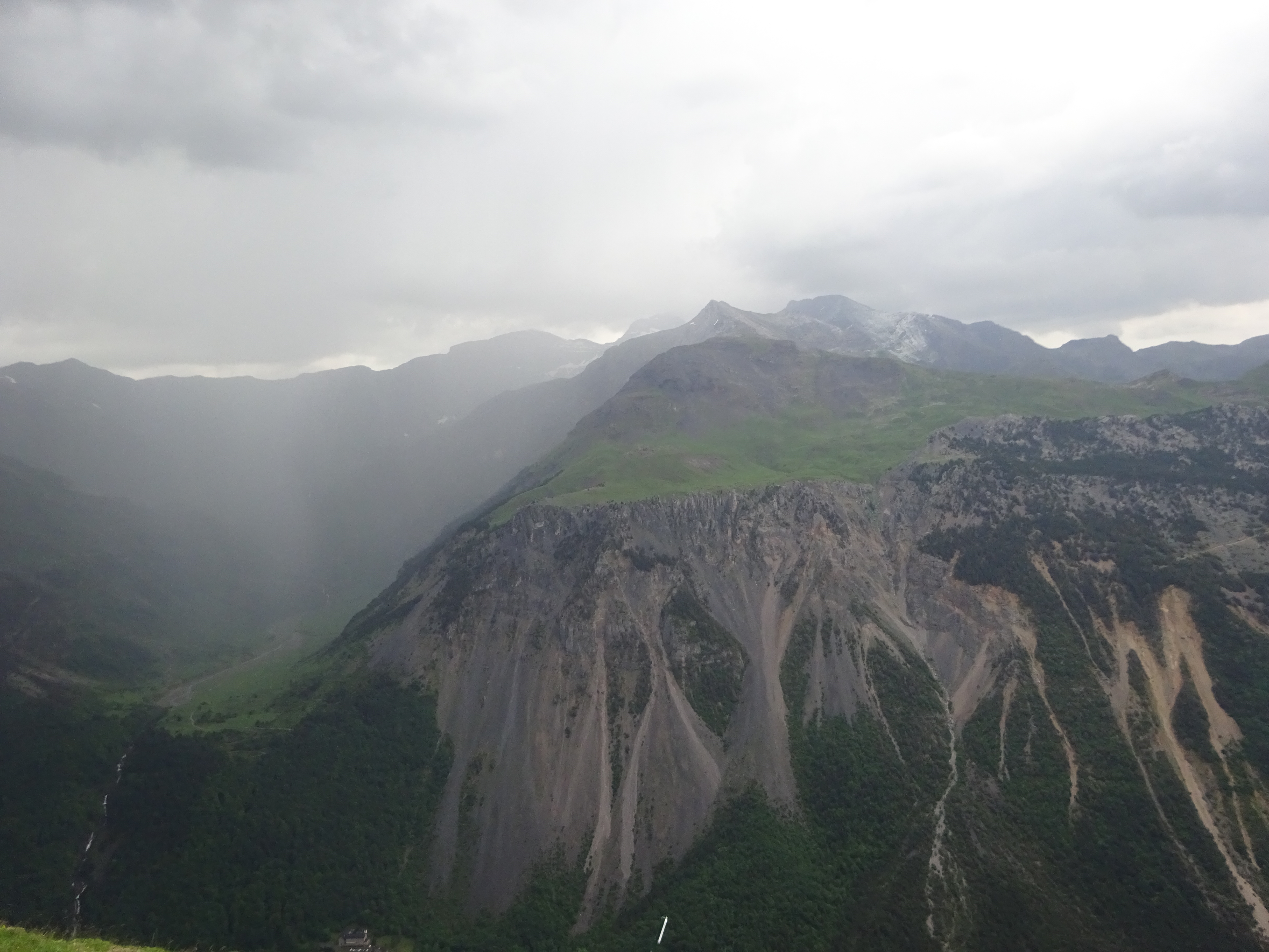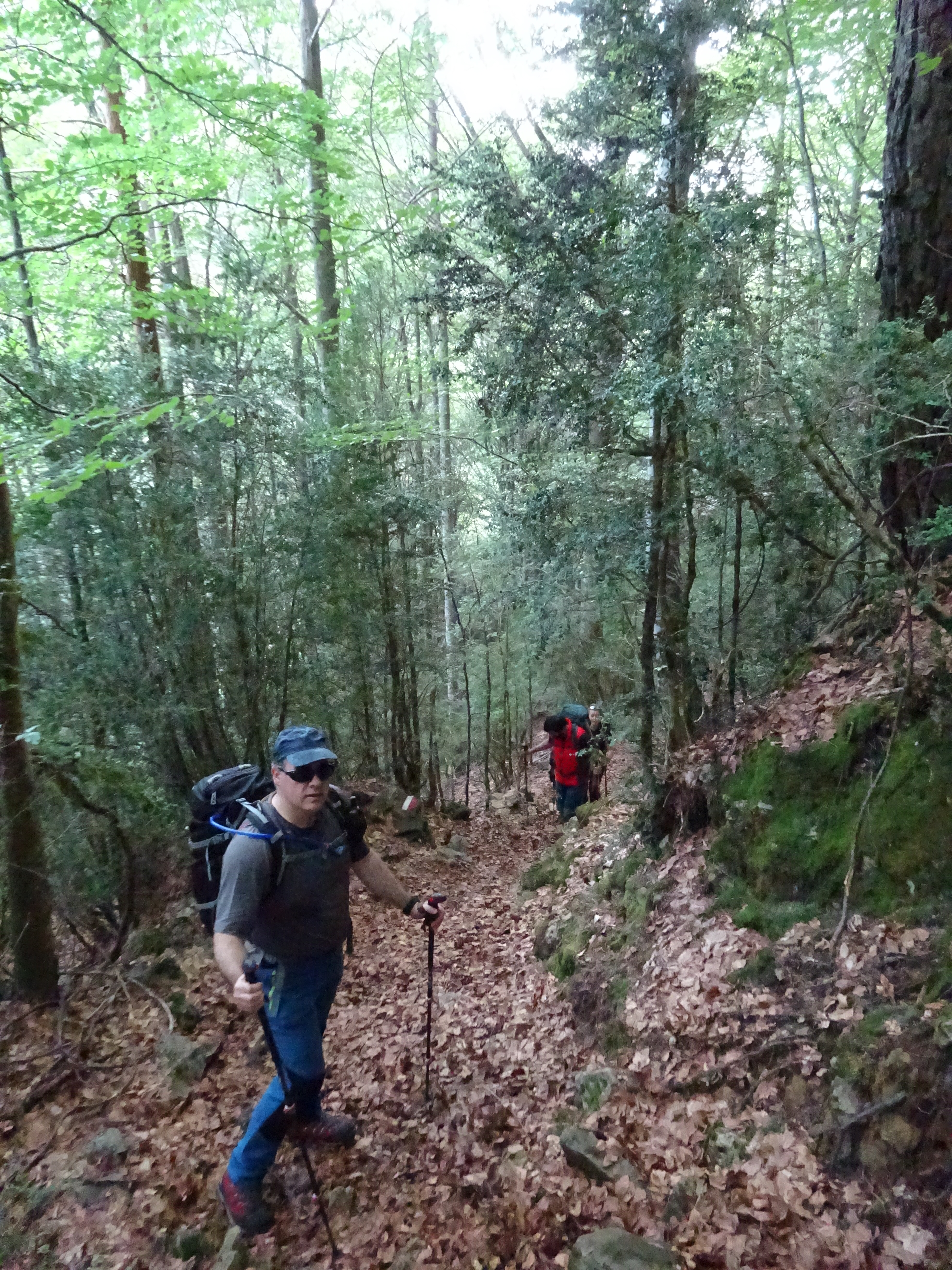 Superado este paso, no nos queda sino bajar con precaución por la zona de las lajas y superar la «ducha» que a esta hora cae con más fuerza que por la mañana. Alguno se empapa hasta los huesos. En bajada y con el tiempo deteriorándose empieza a tener menos gracia.