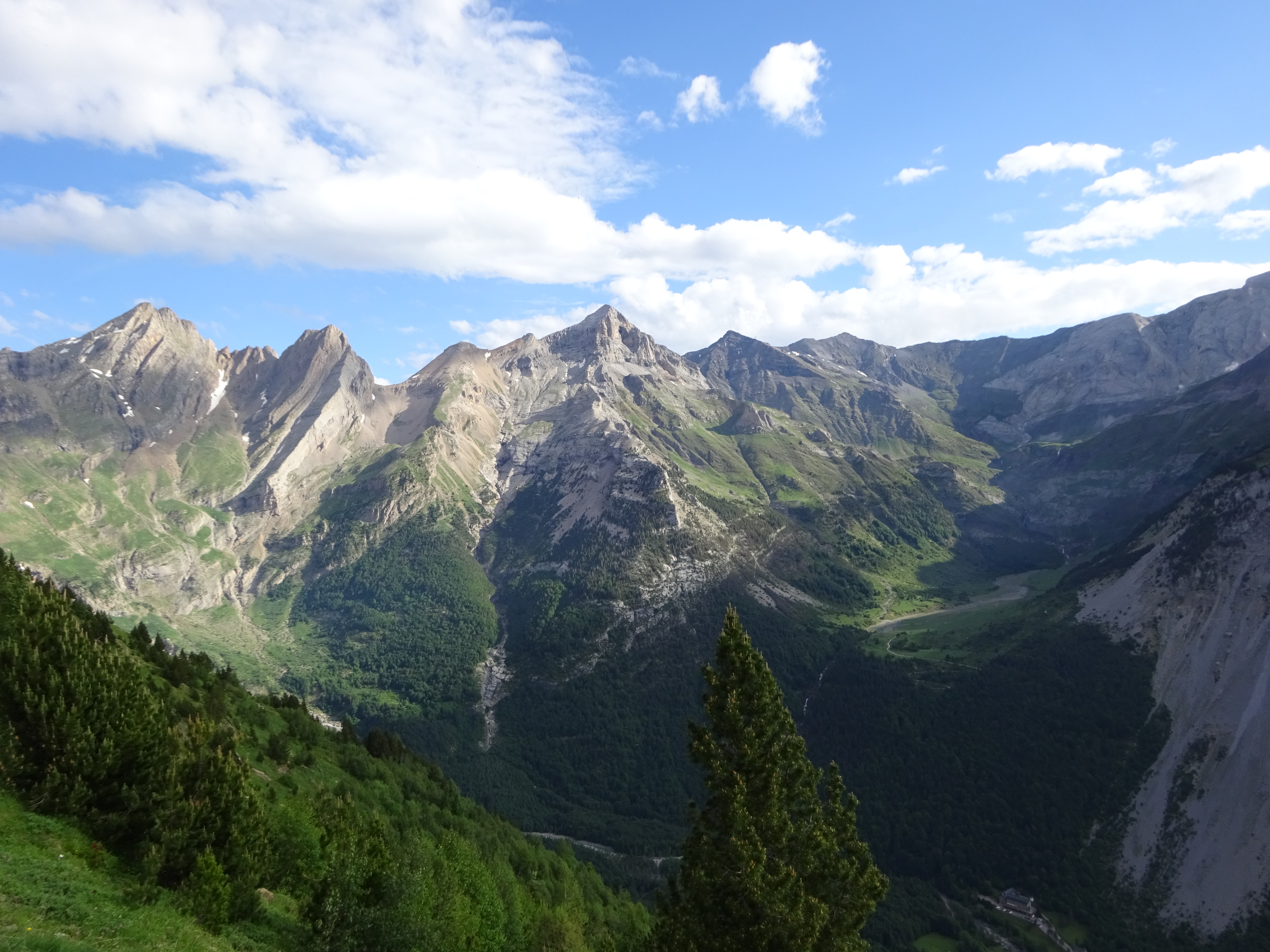 Hay ascensiones en los Pirineos que imponen por su extraordinaria demanda física, y que cualquier pequeño contratiempo puede frustrar. Si esto se combina con un itinerario elegante y natural, comenzando desde el fondo de un valle principal y sin recurrir a carreterillas o pistas de altura que faciliten la aproximación, nos encontramos ante un desafío de esos que gustan. Y el paradisíaco Valle de Pineta, recorrido desde Bielsa por una carretera de suave pendiente que conduce a la Pradera de Pineta y el parador homónimo, a menos de 1300 m constituye el punto de partida de varias de tales excursiones. Probablemente la más grandiosa de todas sea la ascensión al Monte Perdido por su cara Norte, pasando por el Balcón de Pineta. Menos técnica, pero con un desnivel apenas inferior, es la de La Munia, pasando por los Lagos de Lalarri. Y finalmente, hablando de tresmiles, tenemos la del Pico Añisclo, o Soum de Ramond (3257 m), la más oriental de las Tres Sorores, previo paso por la Punta de las Olas (3022), que forma el zócalo sobre el que se asientan los gigantes del Parque de Ordesa.