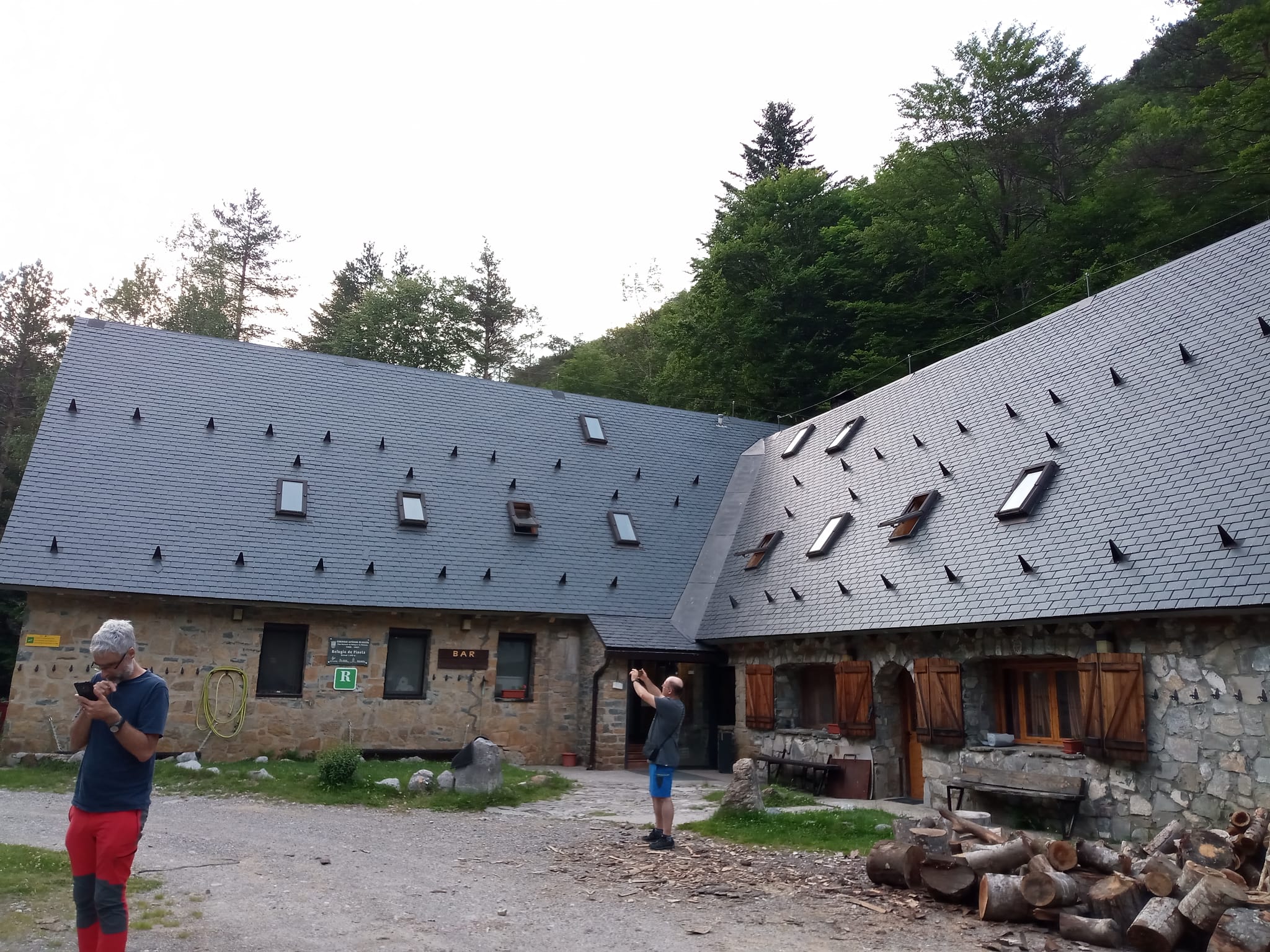 Este refugio está bien organizado, con dormitorios subdivididos en departamentos de cuatro literas, baños y duchas limpios, y comidas aceptables. El personal es amable, y no perdieron ocasión de explicarnos los detalles de la ruta en su parte superior. Insistieron en la presencia de nieve y la necesidad de llevar piolet y crampones. Tambien mencionaron el «truco» para acceder más rápidamente a la Punta de las Olas, que más tarde erraríamos.