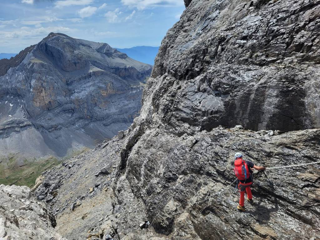 Dificultad: F+. Pasos expuestos en la Faja de las Olas.