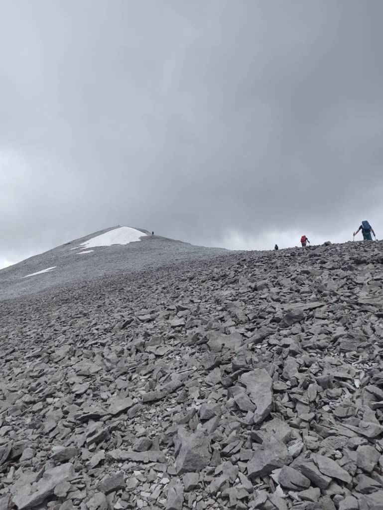 La antecima por fin se hace visible, según el cielo se cubre cada vez más.
