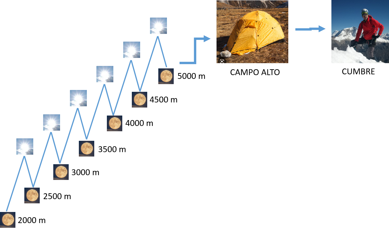 Las expediciones comerciales al Ojos del Salado suelen durar 14 días de media. Se sube a los 4500 m del Campo Base en la Laguna Verde y se aclimata haciendo cimas cada vez más altas en los alrededores. Logísticamente es simple, contando con llevar consigo todo el agua y víveres imprescindibles, y hay variedad de montañas al alcance de la mano. Sin embargo, encuentro que este tipo de estrategia, quedarse durante días y días en el mismo sitio mientras se aclimata, es aburrido. Y mientras que dormir tan alto facilita que la fisiología corporal se adapte velozmente, conlleva un precio, sobre todo considerando la incomodidad asociada a dormir en campamento. El cuerpo se desgasta al tiempo que se aclimata… En el Himalaya seguramente no hay alternativa, pero los Andes, y especialmente en Chile, ofrecen amplio espacio para la creatividad. Mi ideal era un viaje que valiera la pena por sí mismo, aun cuando fallara el objetivo montañero principal. Y el Altiplano se presta estupendamente para este fin.