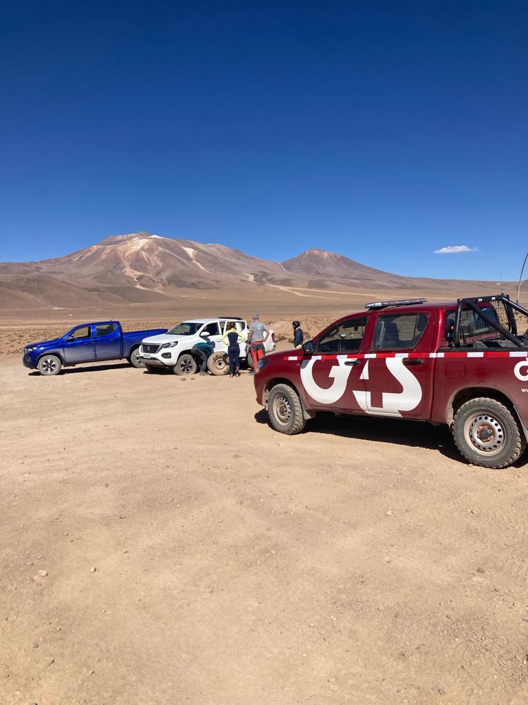 La historia de esta frontera ha sido siempre conflictiva. Contrabando hacia Bolivia de coches robados, o simplemente de bienes electrónicos comprados libres de impuestos en el «Zofri» de Iquique, a bordo de camiones fantasma que atraviesan la frontera por el altiplano. Diez años atrás, en las inmediaciones de la localidad fronteriza de Colchane, nos desviamos de la traza que nos llevaría hacia el Salar de Surire en dirección a Bolivia… y terminamos teniendo un encuentro con un nutrido grupo de estos delincuentes armados. Pero nuestro amigo, que es guardia de seguridad de la mina de Collahuasi, nos confirma que la situación ha empeorado considerablemente en los últimos tiempos. El tráfico de personas relacionado con los flujos de inmigrantes ilegales ha aumentado el nivel de violencia. Recientemente hubo un asalto a un trabajador de la mina, a quien robaron el auto (los Hilux están muy cotizados), así como tiroteos. Los turistas no parecen ser el objetivo principal, pero es tranquilizador cuando da parte de nuestra presencia a través de la radio. Y sobre todo cuando nos hace notar que la rueda delantera izquierda del coche que conduzco está pinchada…