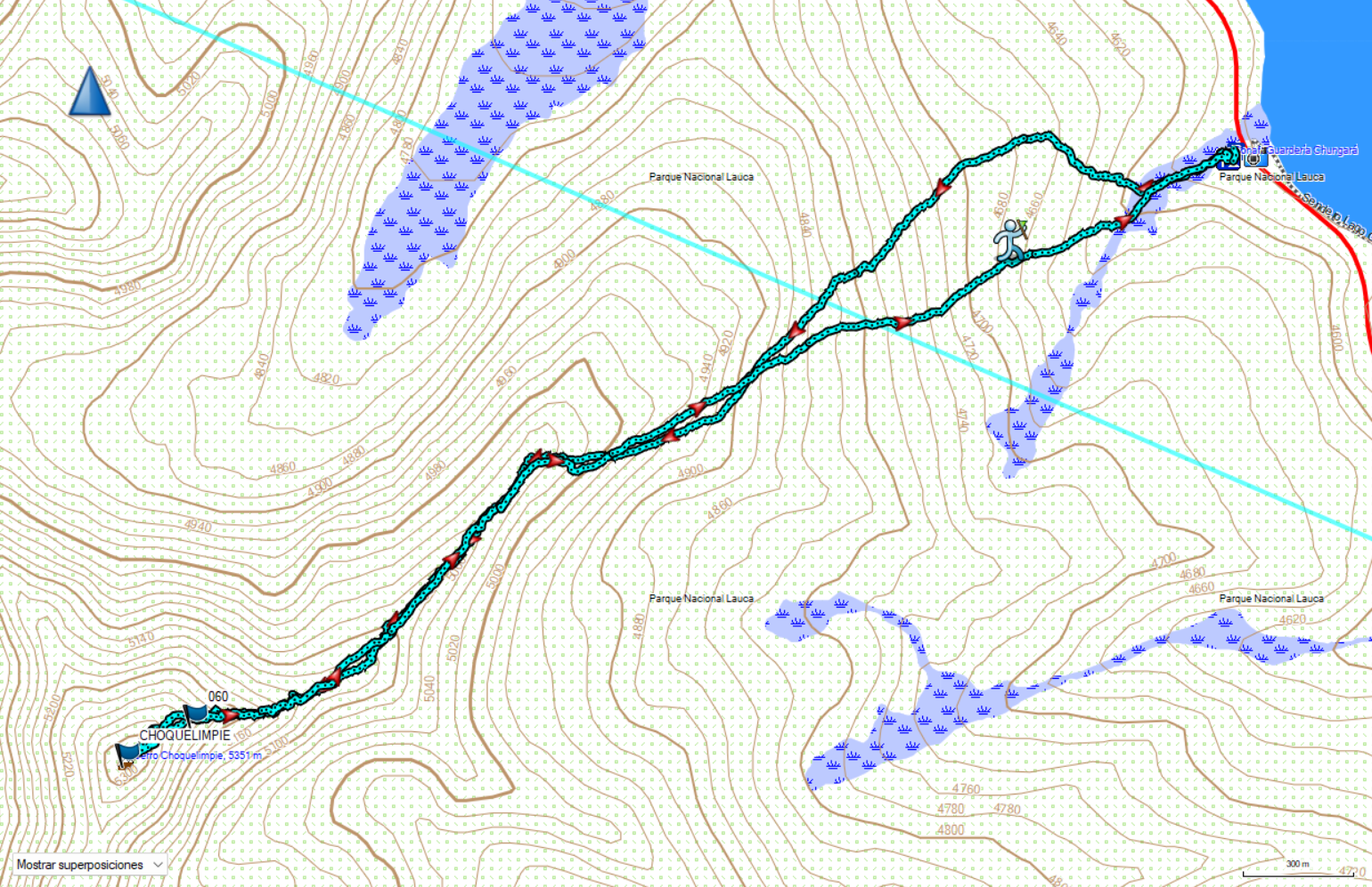 Nuestra segunda cima de aclimatación supondría superar los 5000 m, y para la mayoría del grupo, la más alta de su historial montañero. El desnivel acabaría siendo parecido al del Cerro Milagro, pero en un entorno de mayor severidad. Además, el Choquelimpie es una montaña bien individualizada, que domina los alrededores, y ¡que sale en los mapas! En este caso no hay dudas con el nombre.