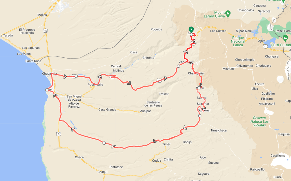 El tráfico es siempre complicado en las inmediaciones de esta ciudad, austera pero no exenta de encanto, que hasta finales de siglo XIX perteneció a Perú, pasando a Chile después de la Guerra del Pacífico. Curiosamente, el destino de la ciudad se decidió mediante referéndum, al igual que en el caso de Tacna, cuyos habitantes, en cambio, votaron por permanecer en Perú.