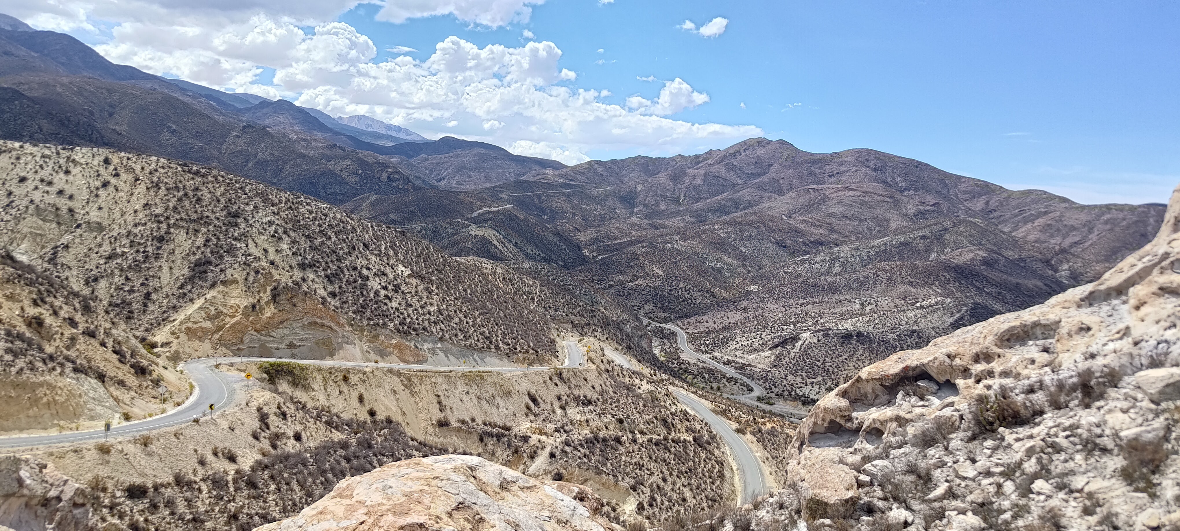 Nada más salir encontramos una zona de obras, con paso alternado de vehículos. Hay que reconocer que el estado de esta carretera internacional ha mejorado bastante en los últimos años, sobre todo en su tramo superior. Al poco llegamos al cruce de Zapahuira, donde abandonamos la 11-CH para girar a la izquierda por la A-35 dirección Belén y Codpa. Esta carretera está asfaltada, pero nos sumerge en un sinfín de curvas, subidas y bajadas, manteniéndonos durante decenas de kilómetros por encima de los 3000 m.