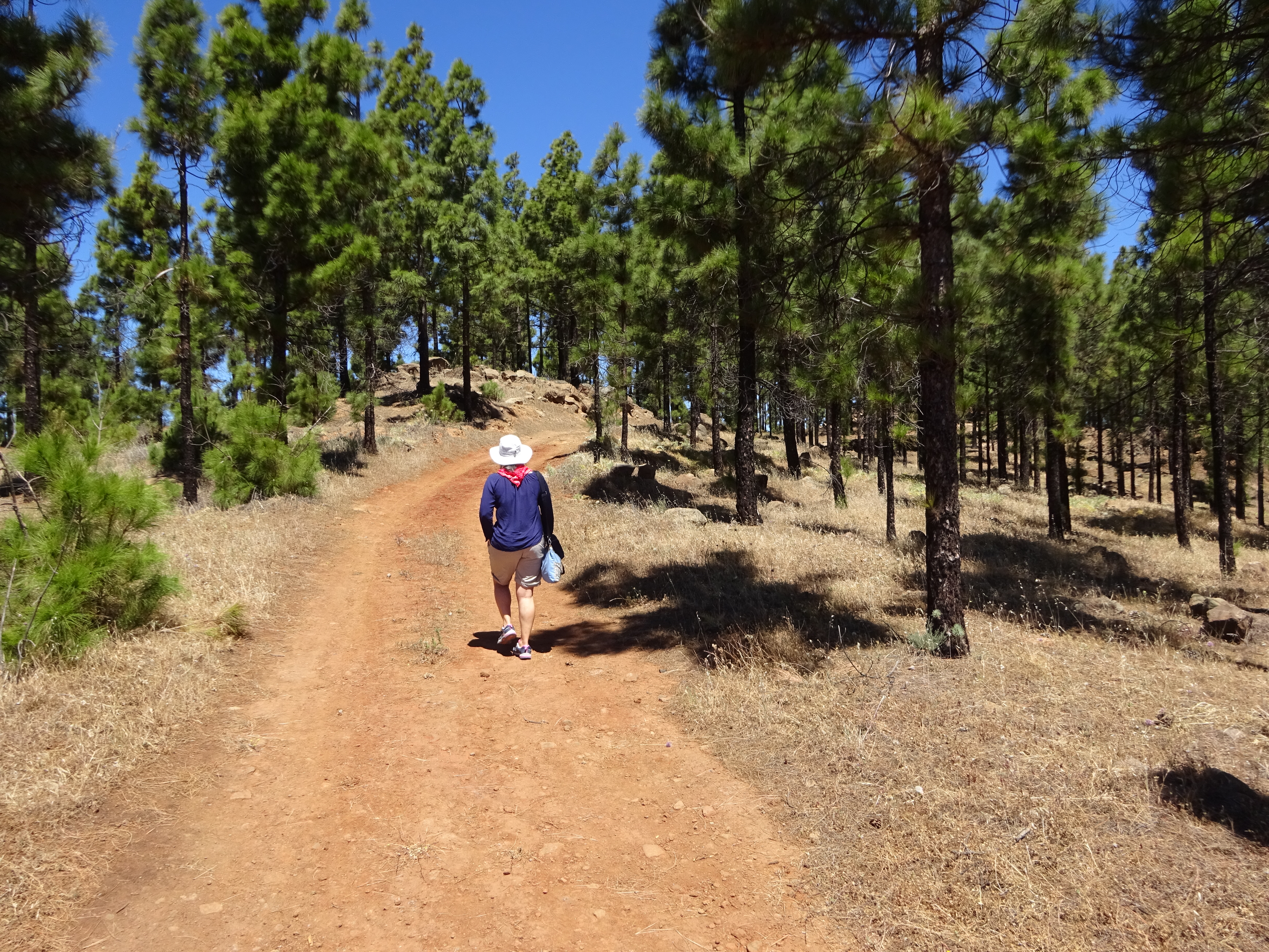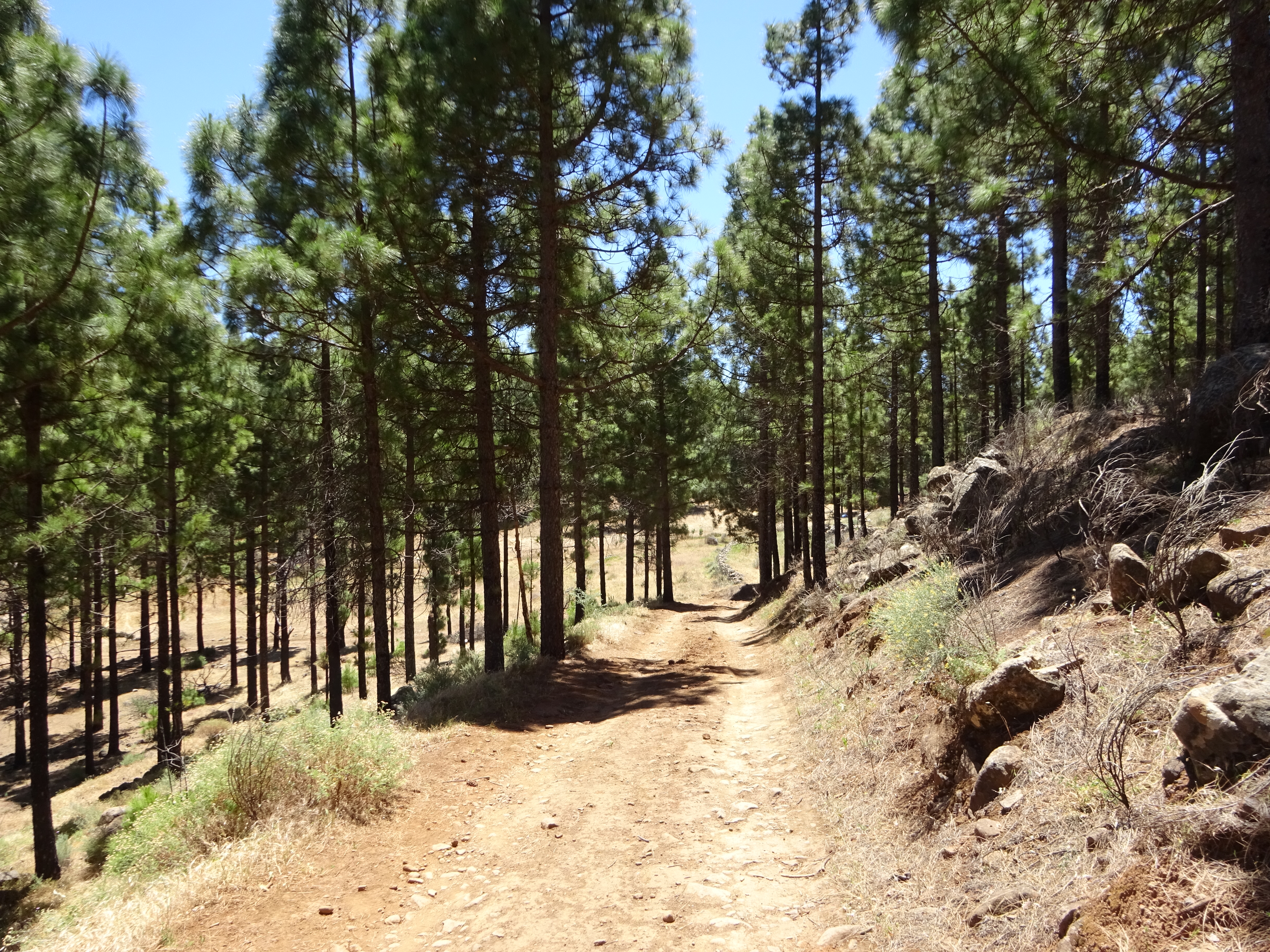 Ha sido un paseo. Sólo 2,3 km, aunque con un mínimo de exigencia que añade una pequeña satisfacción deportiva a la paisajística. Volvemos sobre nuestros pasos hasta el cruce antes mencionado, donde tomamos el ancho camino que, en dirección norte por el interior del pinar, nos devuelve a la vertiente opuesta y al sendero S-90.