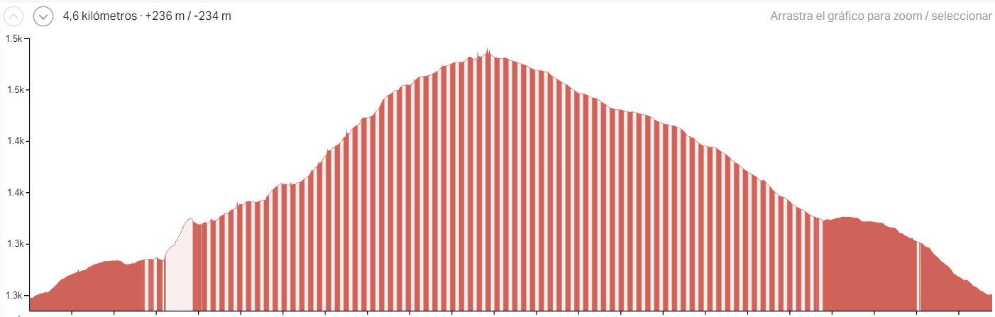 En apenas trescientos metros lo que era casi una pista forestal se desdibuja según llegamos a la cumbre, un círculo de rocas en mitad del bosque donde tengo que usar el altímetro para cerciorarme de que, efectivamente, estamos en el punto más elevado, a 1488 m.