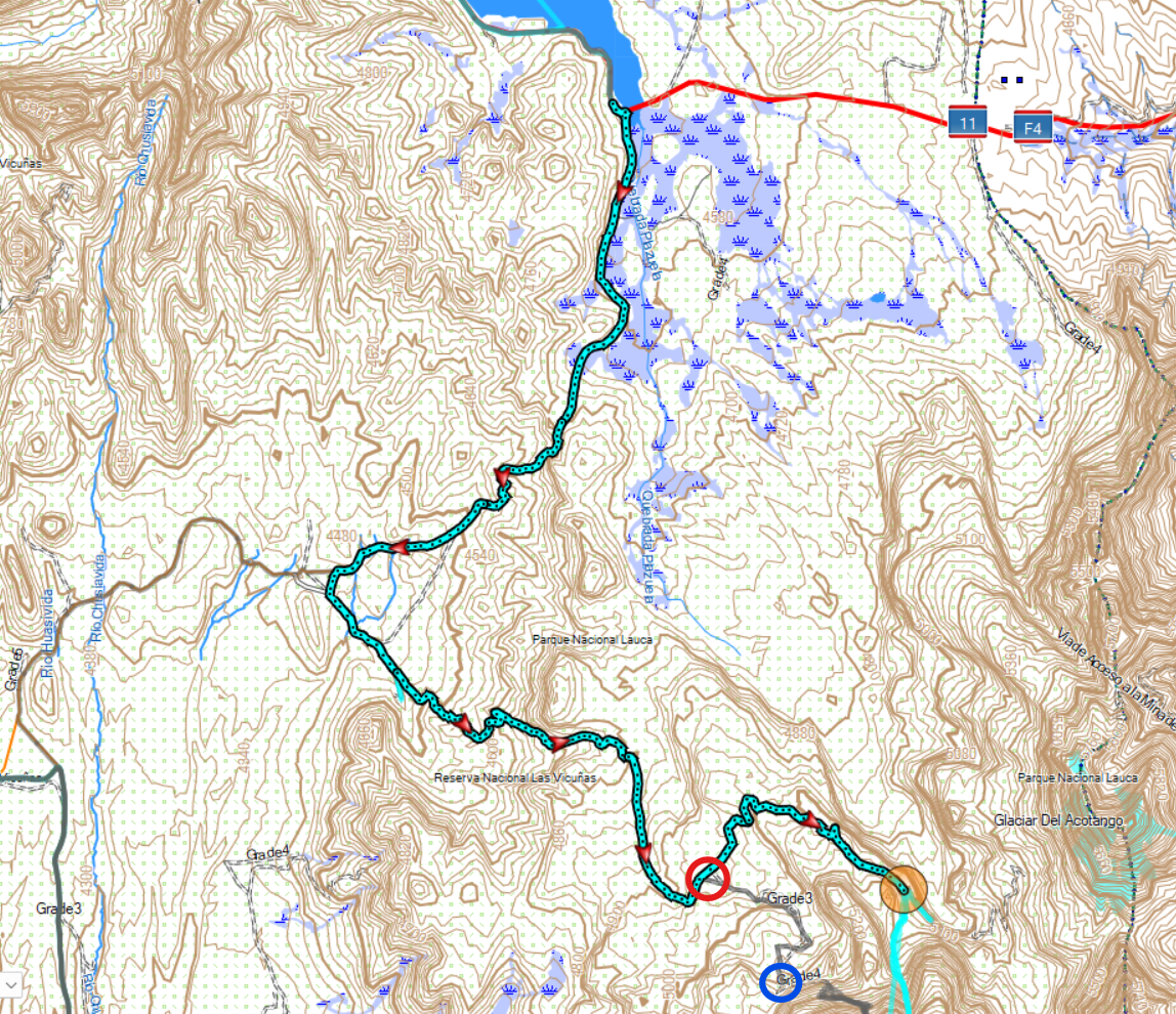 Coordenadas cruce después de Chiriguaya, mantener izquierda: S18º 21,623′ W69º 10,625′ / 4456 m / 13,59 km desde cruce CH11-A95