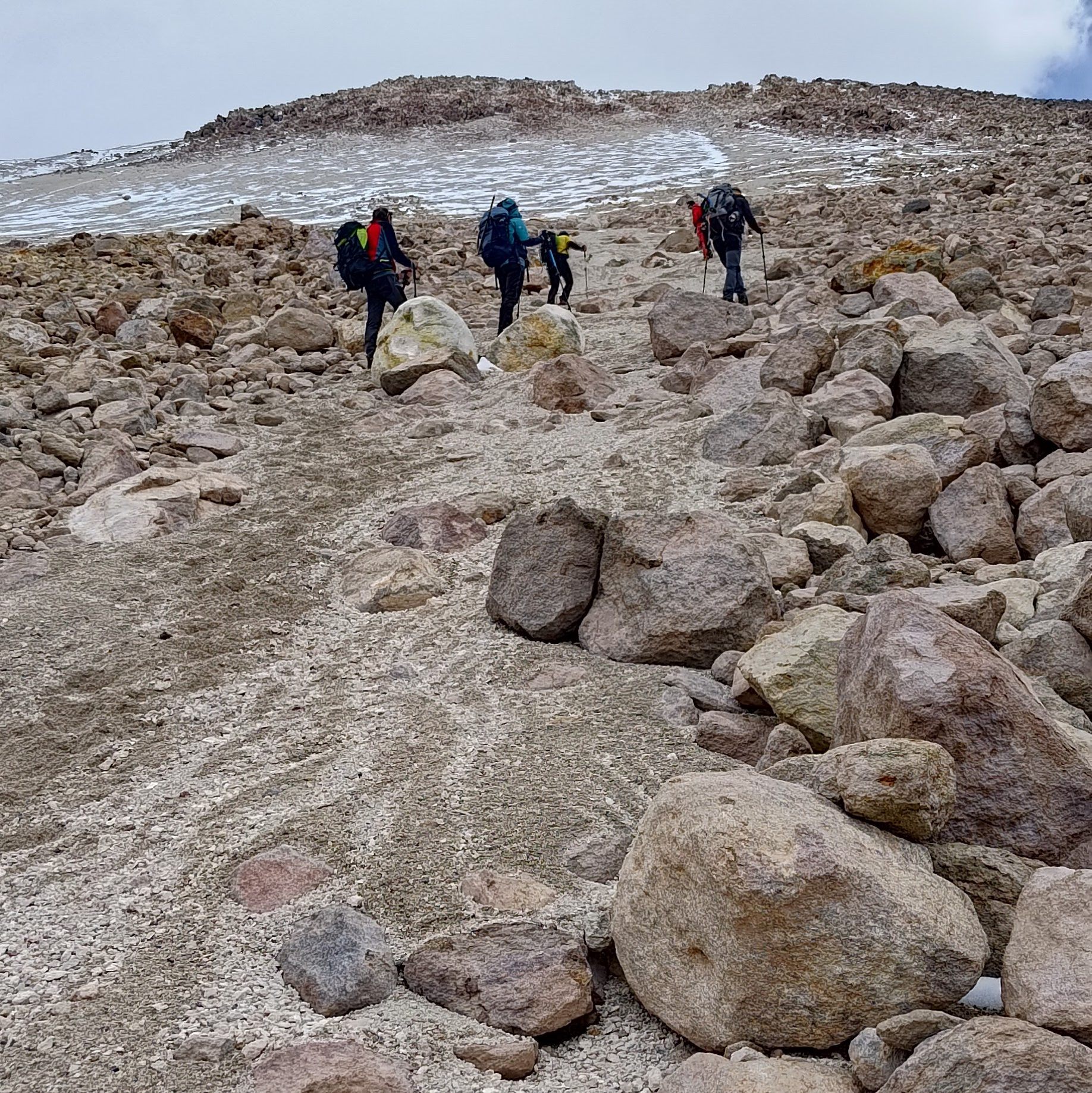 No especificaré datos técnicos al no haber llegado a la cumbre. Para la ascensión son imprescindibles piolet, crampones, casco y una mascarilla o pañuelos para protegerse de las emanaciones sulfurosas del cráter. Y por supuesto, unas buenas botas y ropa de abrigo. A finales de noviembre o principios de diciembre las temperaturas en la cumbre suelen ser relativamente benignas, no bajando de -5ºC, pero en junio-julio pueden ser bastante más frías, aunque el tiempo es mucho más estable.