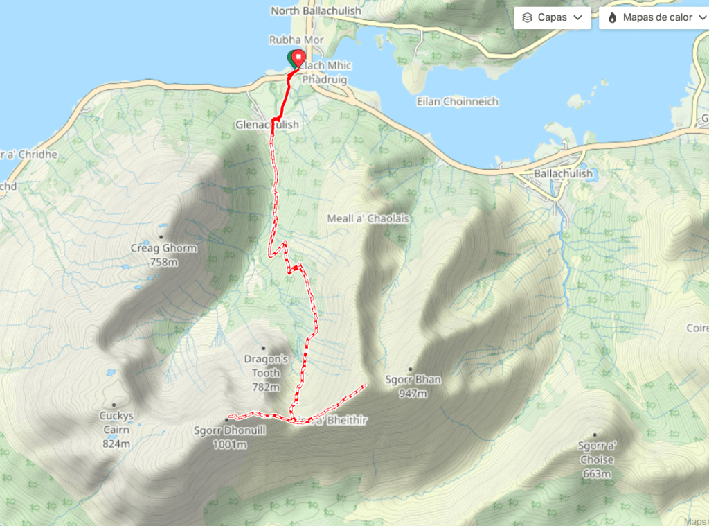 Traza GPS: https://www.wikiloc.com/hiking-trails/beinn-abheithir-197319878