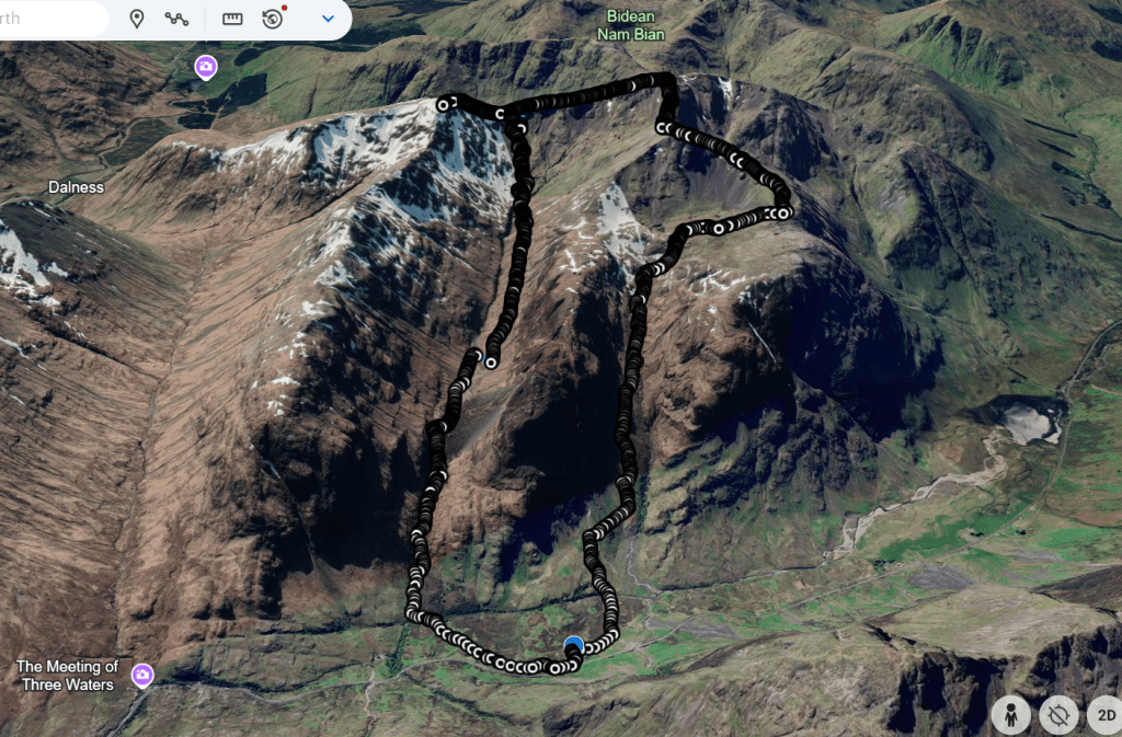 Traza GPS: https://www.wikiloc.com/hiking-trails/bidean-nan-bian-and-stob-coire-sgreamhach-195327145